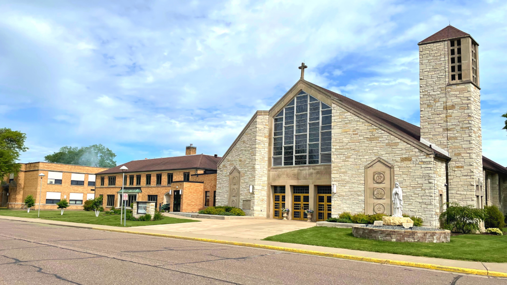 "Immaculate Conception Parish strives to be a faith-filled Christ-centered community, sharing the gifts of time, talent, and treasure. We gather for worship and fellowship, provide opportunities for growth through education and formation, serve the parish community and others in need and welcome all people, thereby witnessing to Christ’s love and presence." We also use "All Are Welcome" as a frequent tagline on our social platforms.
